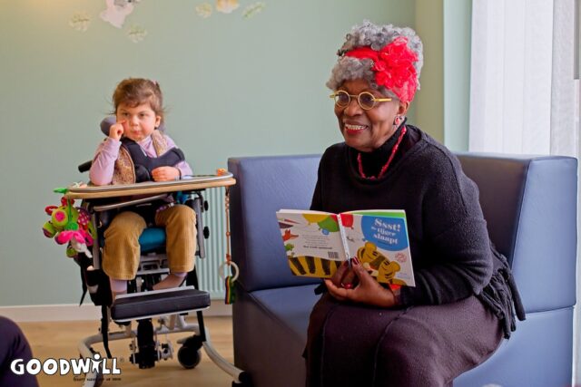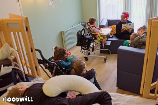 Verderop in de kring kijkt iemand met een sprankeling in de ogen en een ander zwaait enthousiast met z’n armen richting Gerda. Als ambassadeur van Goodwill.nl leest ze bij verpleegkundig kinderzorghuis De Biezenwaard in Uithoorn voor uit een boek over een tijger.