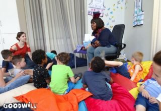 Gerda Havertong is ambassadeur bij Goodwill. Zij vindt het belangrijk dat álle kinderen zich kunnen ontwikkelen. Met haar interactieve manier van voorlezen worden alle kinderen op hun eigen niveau betrokken bij het verhaal. Luisteren, praten, aanwijzen, voelen, proeven of zingen, iedereen kan meedoen. Na het voorlezen overhandigde zij een grote stapel met nieuwe boekjes en puzzels over het thema zomer, passend in de nieuwe onderwijsmethode. Dankbaar werd het materiaal in ontvangst genomen. De kinderen van KDC Binderen kunnen weer een tijdje vooruit.